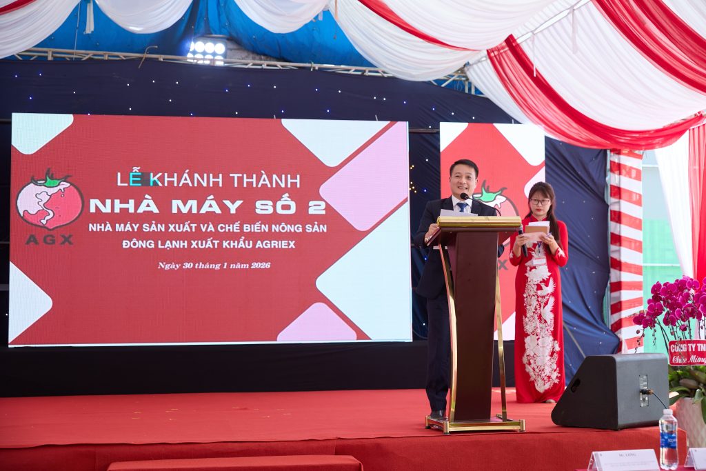 Ngày 30/1, Công ty Agriex long trọng tổ chức Lễ khánh thành Nhà máy số 2, đánh dấu bước phát triển quan trọng trong chiến lược mở rộng quy mô sản xuất, nâng cao năng lực chế biến và gia tăng giá trị nông sản địa phương. Buổi lễ vinh dự đón tiếp đại diện cơ quan quản lý nhà nước, tổ chức xúc tiến, hiệp hội doanh nghiệp, cùng nhiều đối tác chiến lược, tổ chức tài chính đã luôn đồng hành cùng nhà máy trong suốt thời gian qua. Ngoài ra, chương trình còn có sự tham dự của đại diện Trường Đại học Đà Lạt, nông dân, và các nhà cung cấp – những đối tác quan trọng trong hệ sinh thái phát triển vùng nguyên liệu và chuỗi giá trị của Agriex.